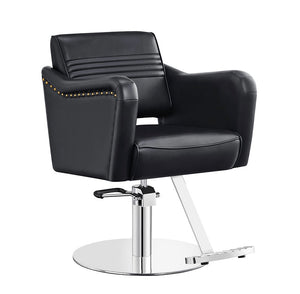 The Salon Styling Chair Captain rises to the occasion when appearance and comfort are both necessary. Carefully adjusted backrest along with curved armrests assures your clients feels relaxed while your salon stays fashionable, added studs completes the overall design.