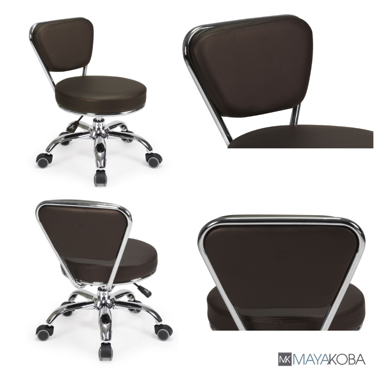 The Dayton Pedicure Stool is an elegant and sophisticated pedicure stool.  Its great for higher end salons and comes available in popular colors such as black, grey, cappuccino, red, pink and more.  Additionally, its upholstered with soft acetone resistant vinyl and padded memory foam back and seat cushion for superior comfort. It comes finished with a polished chrome base and 5 easy roll-about castors for mobility.